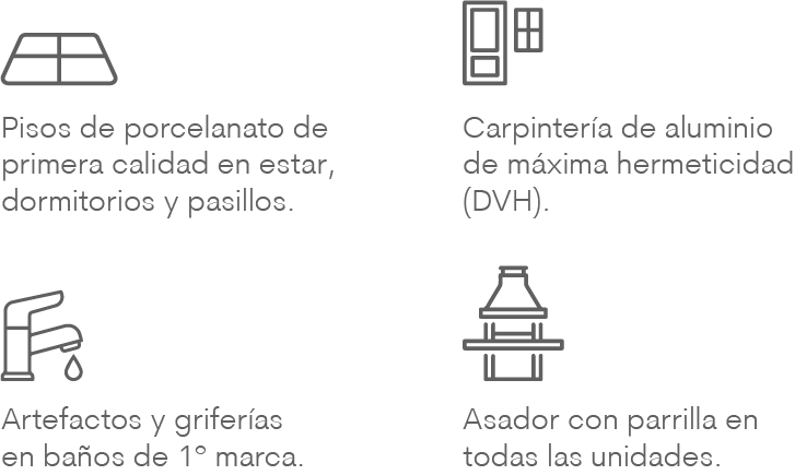 • Baños con revestimiento cerámico de primera calidad en pisos y paredes.